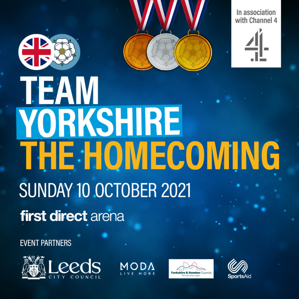 The Team Yorkshire Homecoming event to celebrate the achievements of the Yorkshire Olympians and Paralympians. The event will take place on Sunday 10th October from 3pm – 5pm (doors open at 1.30pm).